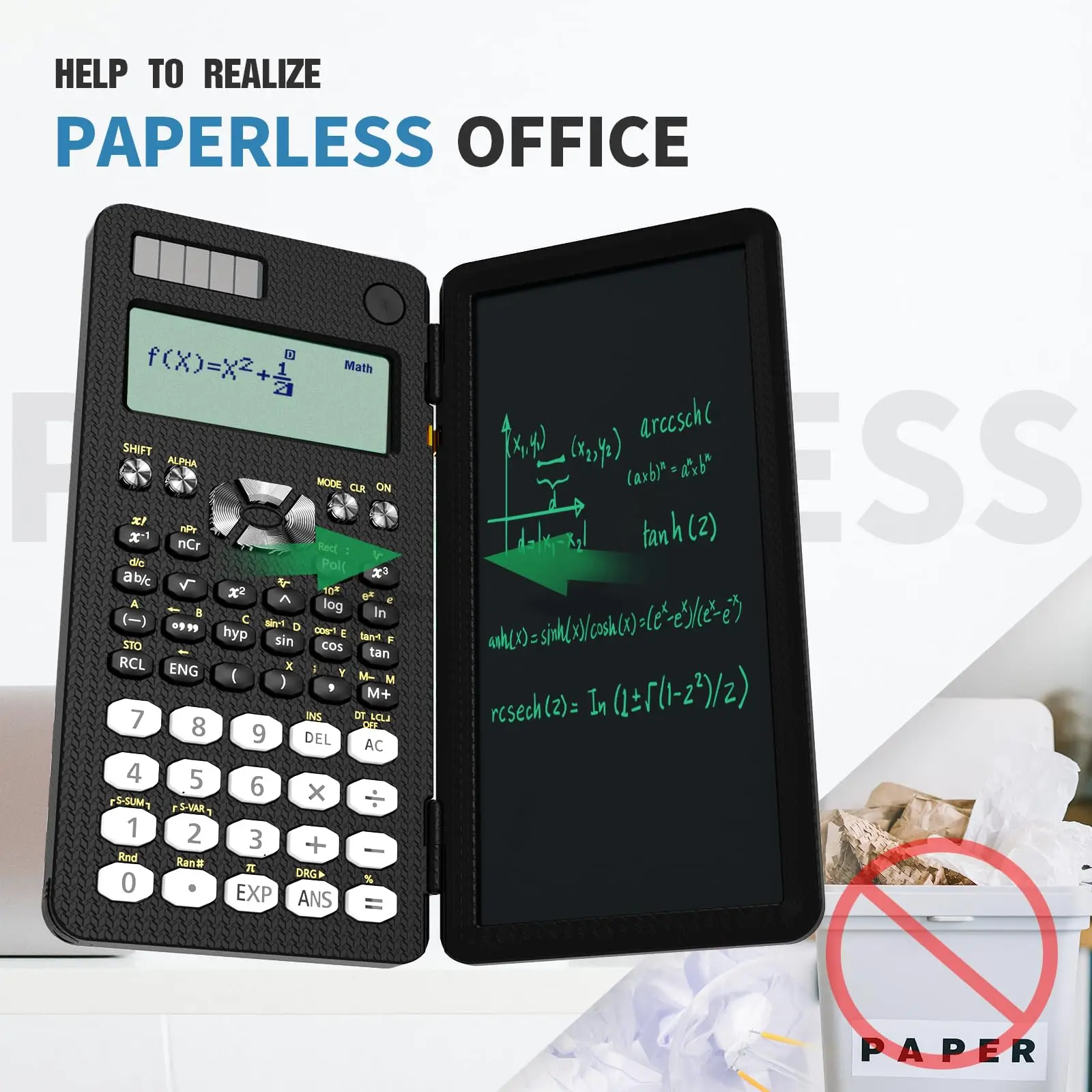 מחשבון מדעי עם פנקס רשימות, ציוד חובה לחטיבות הביניים והתיכונים, לסטודנטים ולמכללות. מחשבון מדעי 82 MS מתקפל בעל 2 שורות לתצוגה עם טאבלט כתיבה, מופעל באמצעות שמש וסוללה